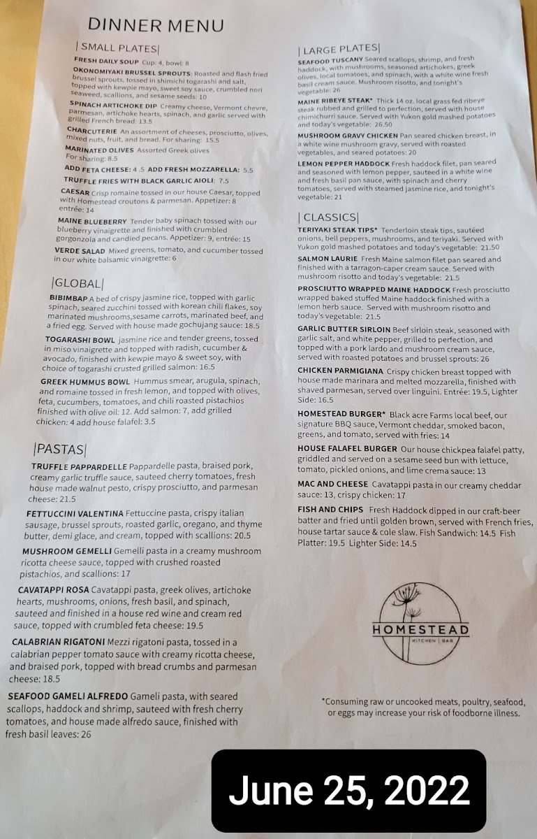 HOMESTEAD Kitchen Bar Menu (2025 Update)